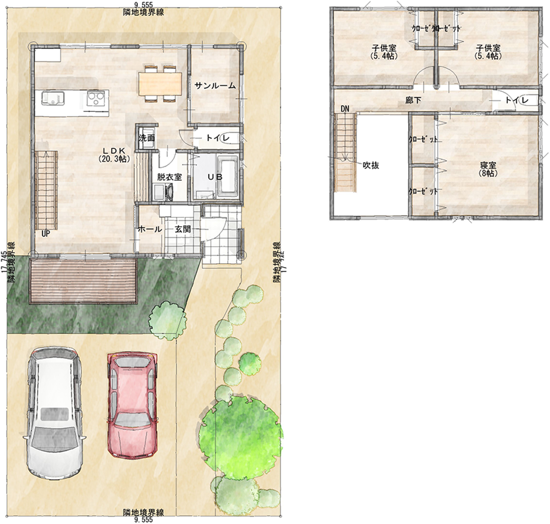 雨の日が多い福井県で暮らす家族のことを考えて、1階にはサンルームを設置。天候や時間に左右されることなく、一年中洗濯物を干すことができるので、忙しい主婦の方でも安心!地元・福井のための嬉しい設計です。