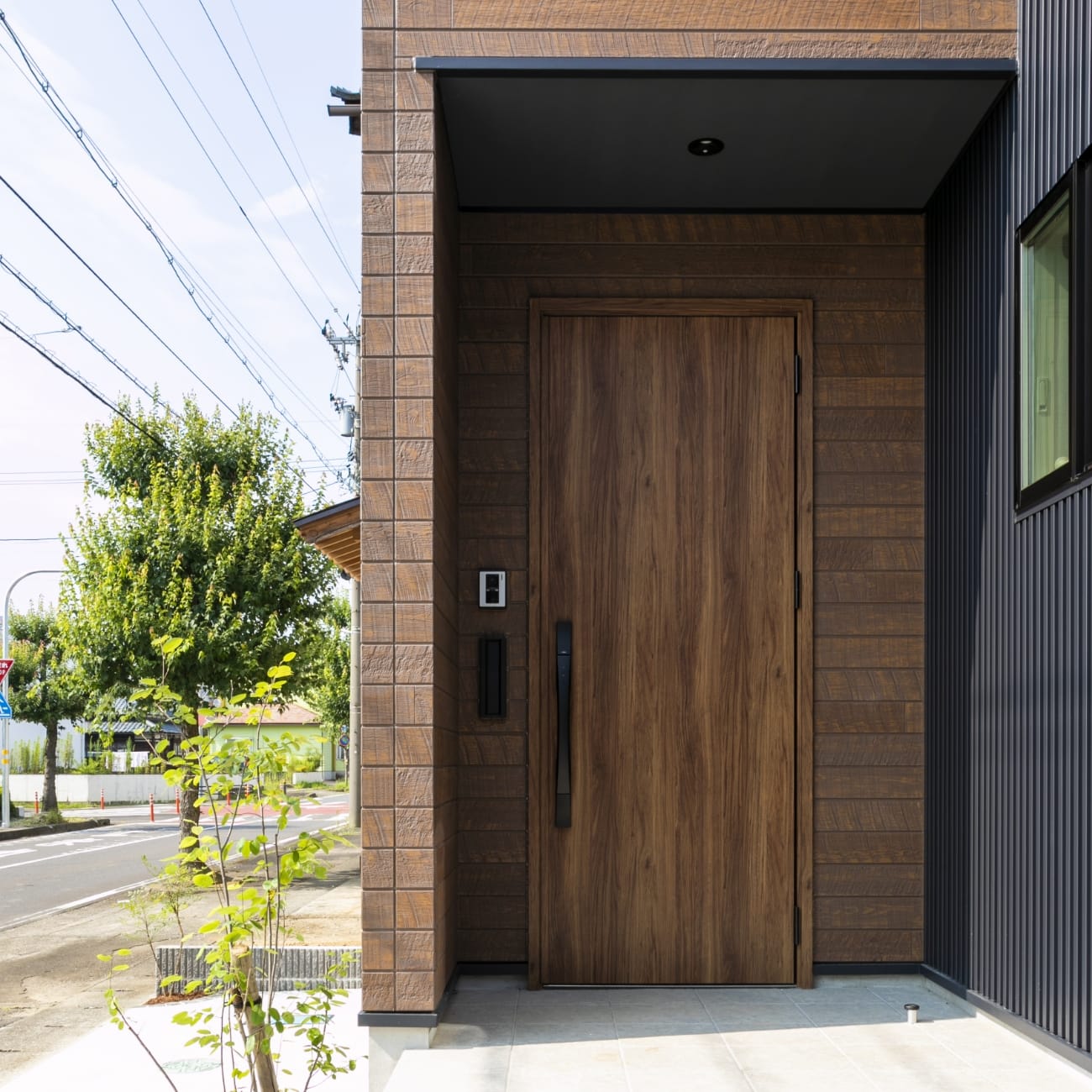 玄関の鍵にはボタンひとつで施錠可能なリモコンキーを採用しており、スマートでおしゃれな暮らしが可能。さらに、玄関は天井まで高さがあるハイドアになっているので、屋内がすっきりと見え、広々とした快適な空間を演出しています。