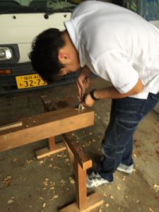 ノミ研ぎから始まり、柱に ほぞ穴をあける