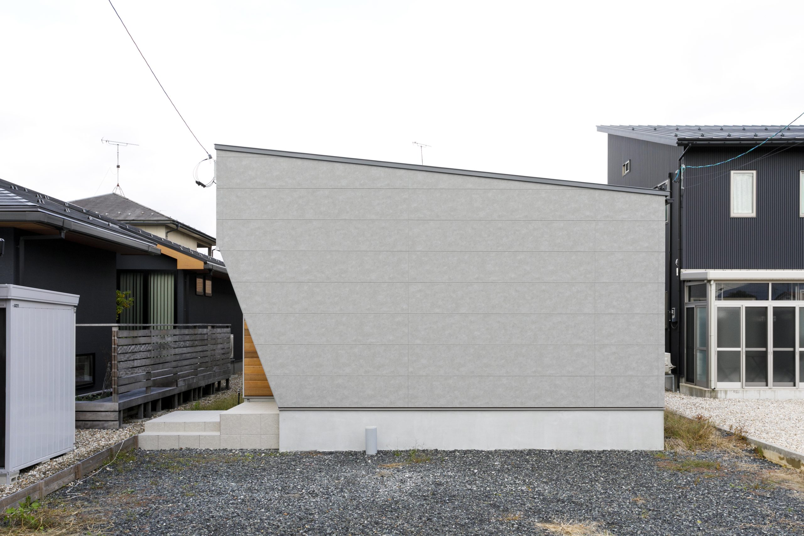 玄関前の壁を斜めにデザインすることで、玄関ポーチの