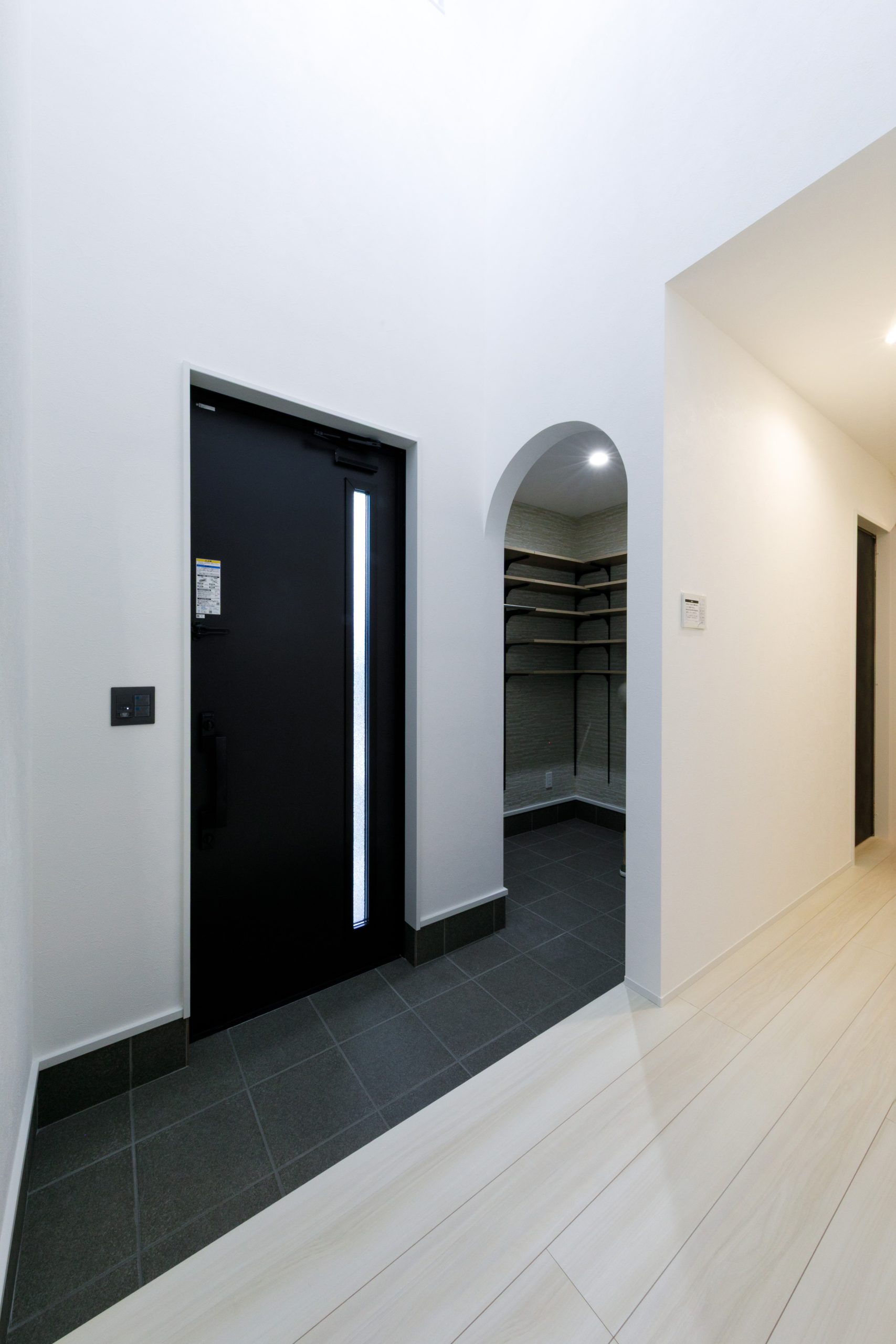 玄関収納の入り口にアーチの垂れ壁を取り入れて