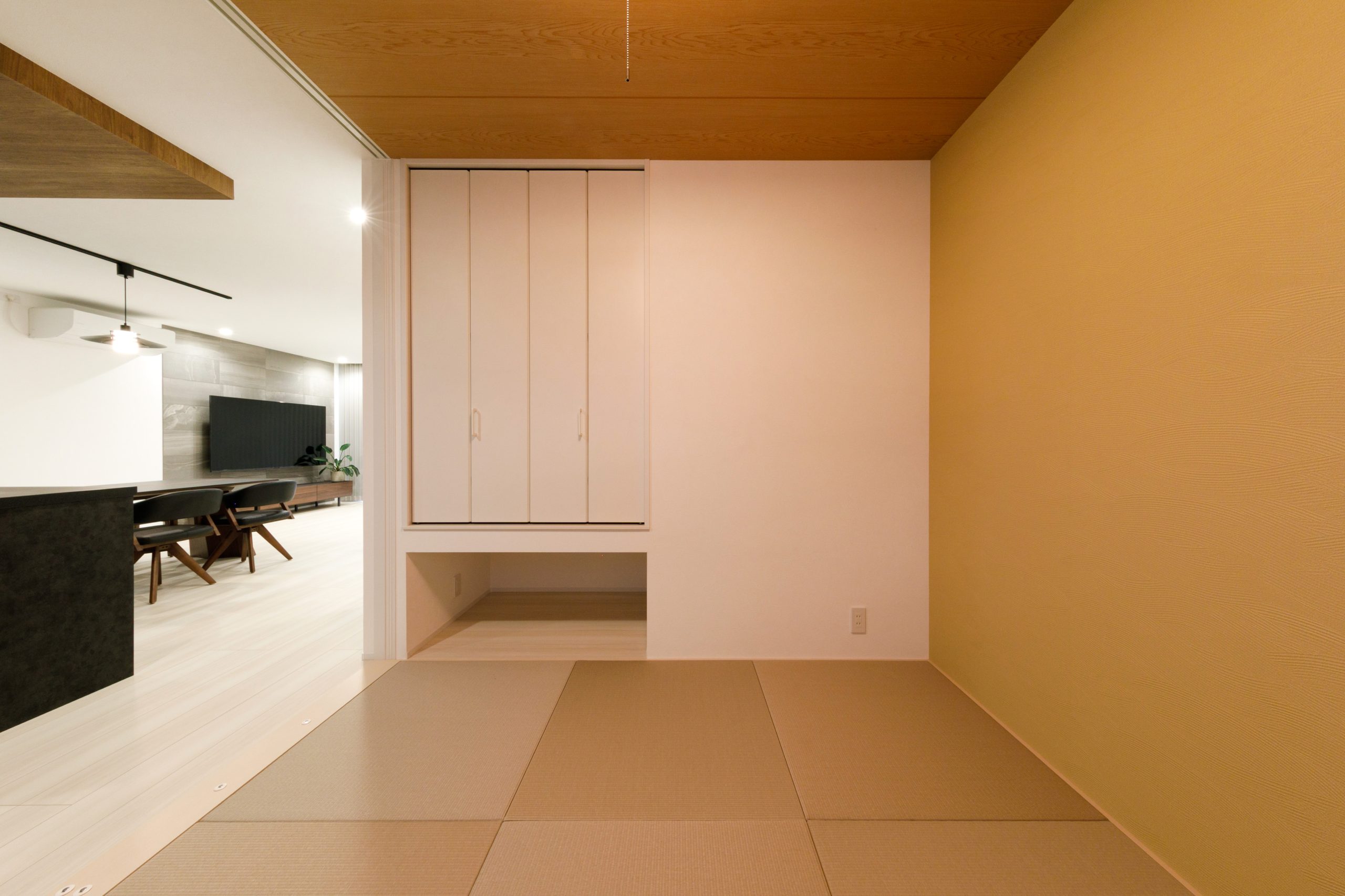 リビング繋がりの和室は優しい色合いでコーディネート。