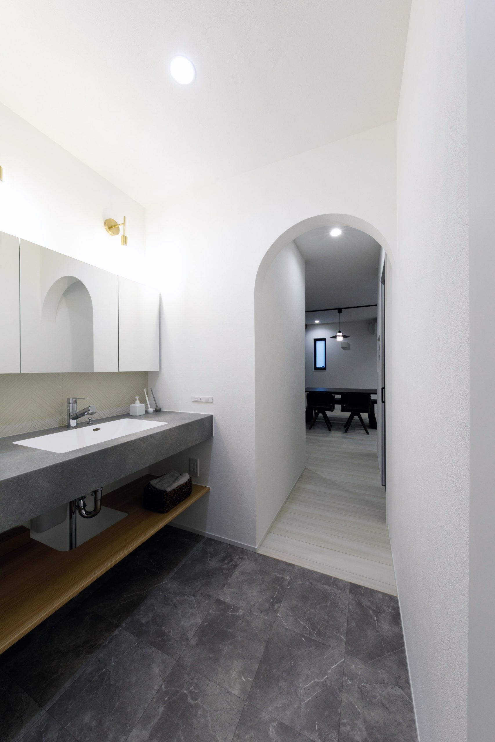 洗面からは直接脱衣&サンルームに繋がっています。 -