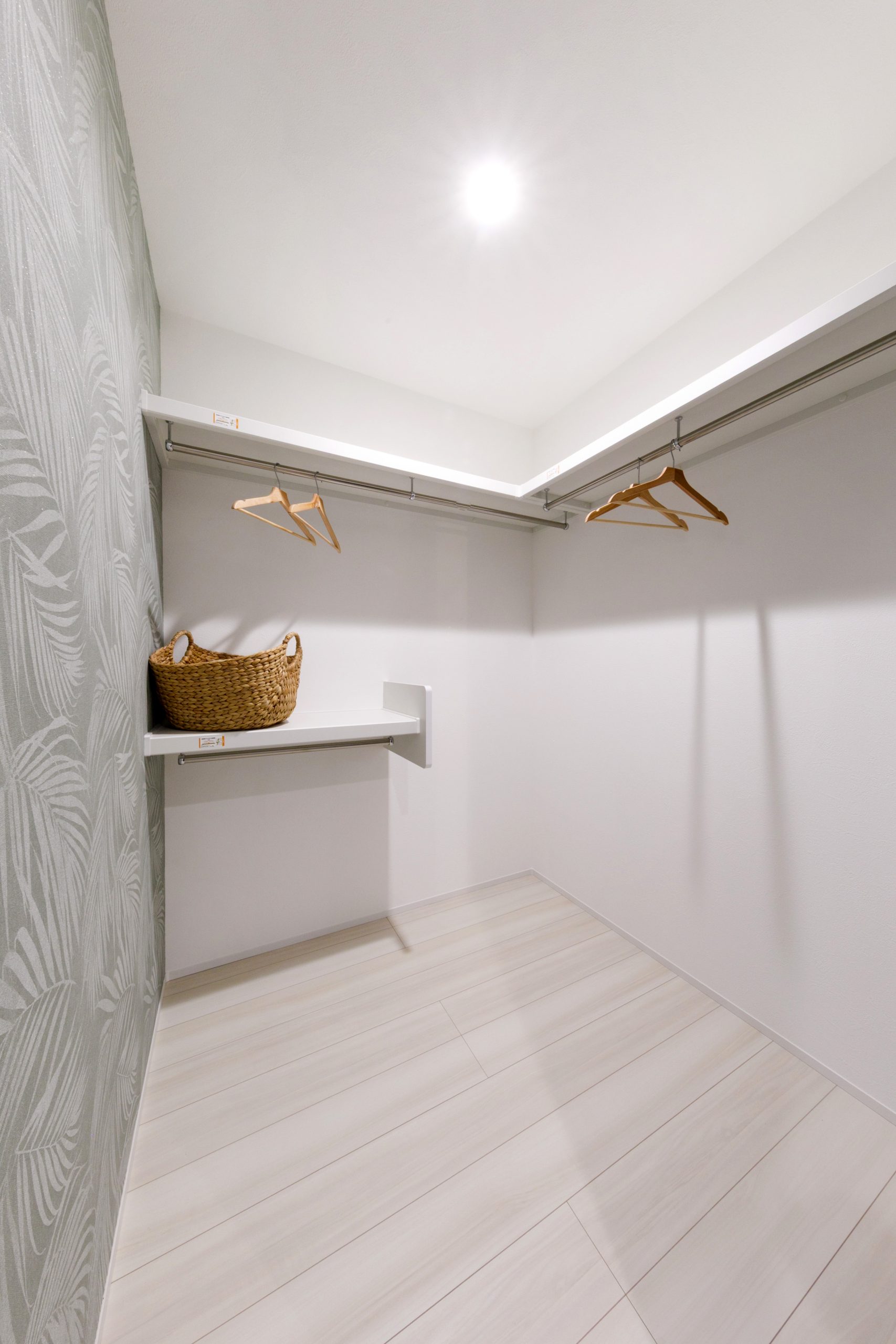 ご夫婦の寝室にも大容量の収納を設けたことで、散らかりにくく