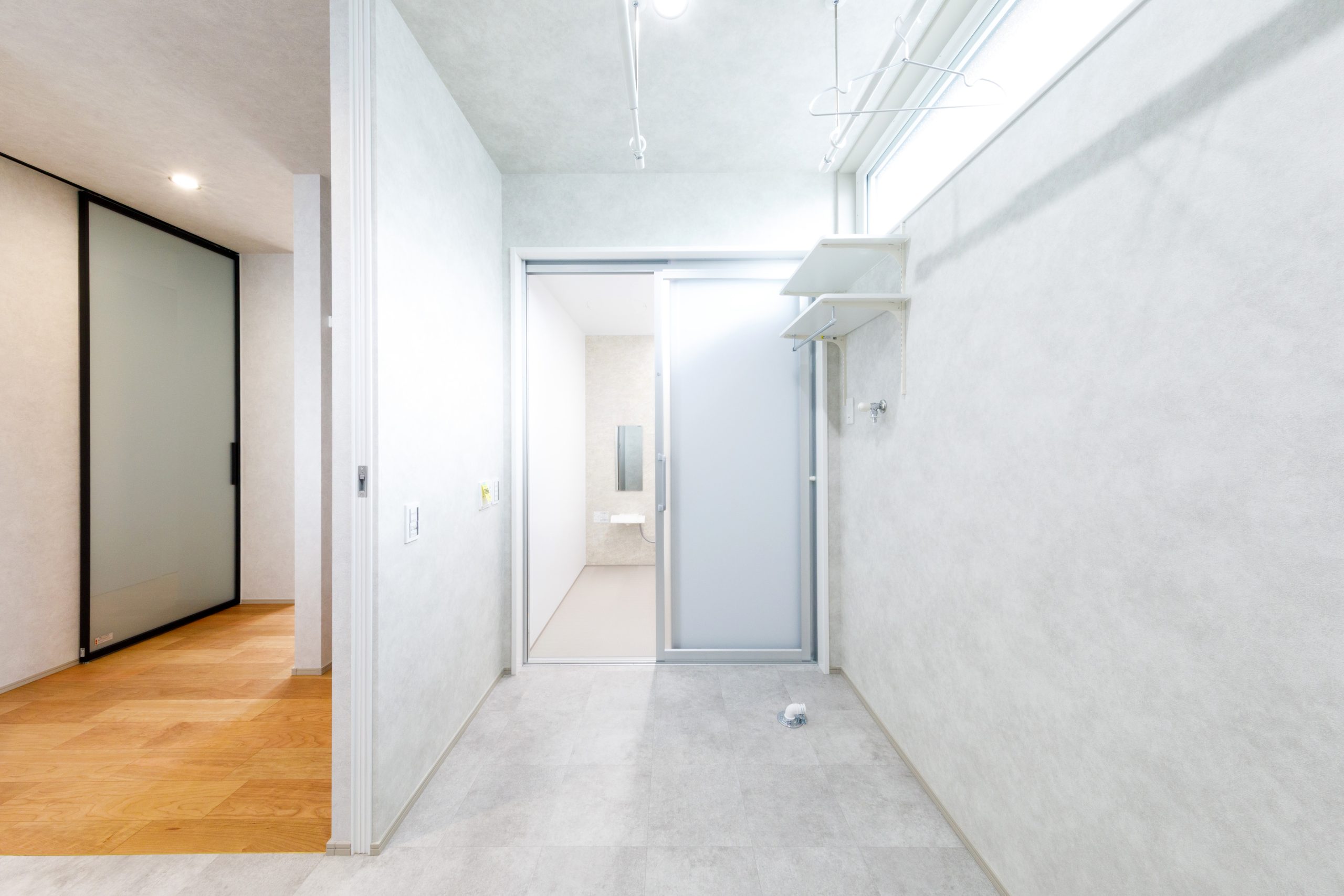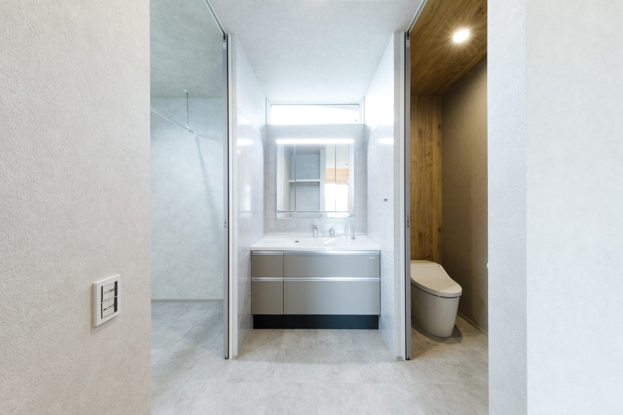洗面・トイレ・脱衣室・浴室を一か所にまとめた、機能的で使い勝手のよい水まわり動線。