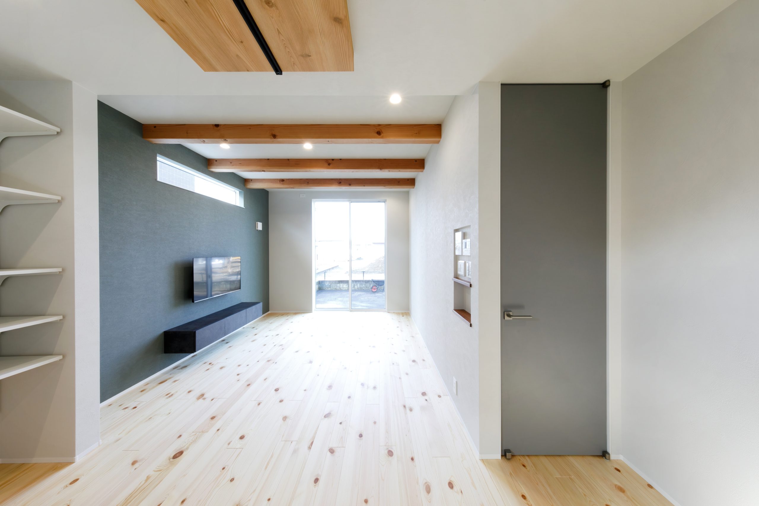 16.8帖のちょうどいい広さに、見せ梁やハイドア、ハイサッシの工夫をプラス。