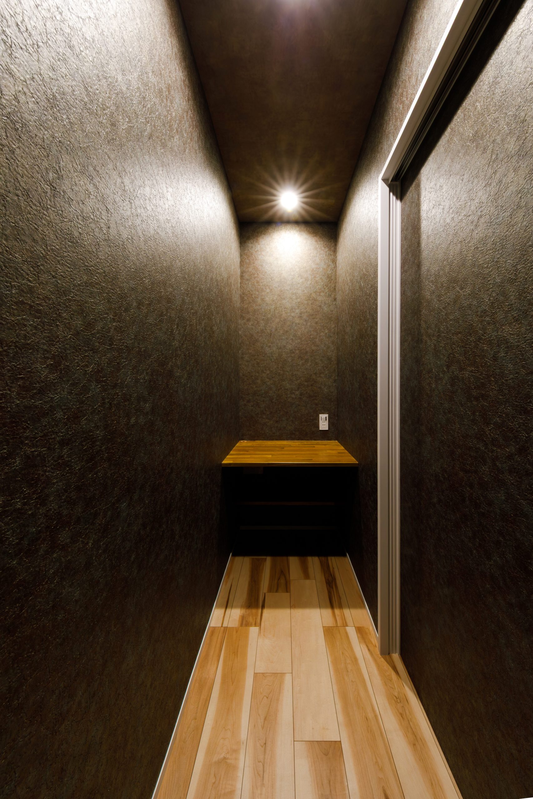 最小限の照明と奥に設けたカウンターが、読書や在宅ワーク、趣味の