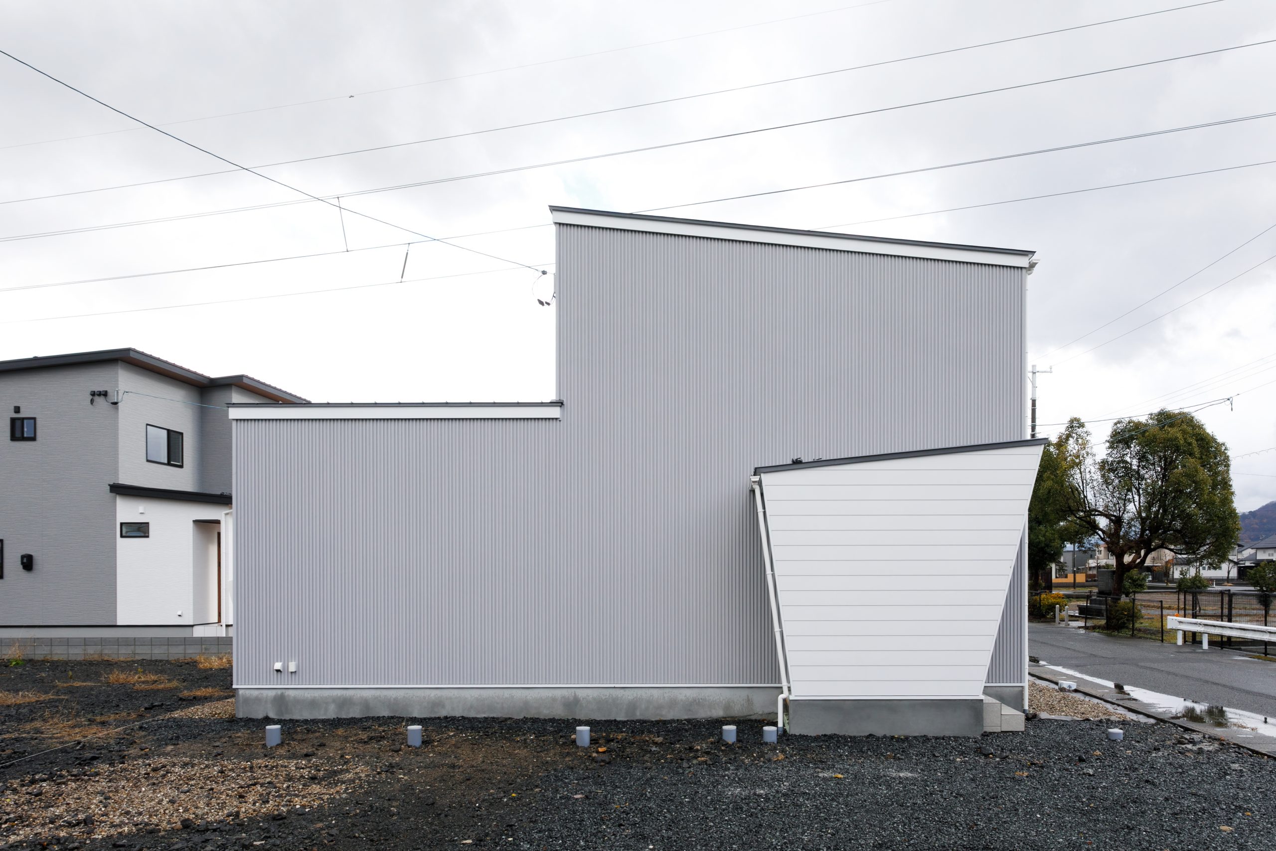 シンプルでシャープなフォルムが印象的なM様邸。外観は縦ラインが美しいガルバリウム鋼板をメインで採用し、無駄のないデザインでスタイリッシュに仕上げました。