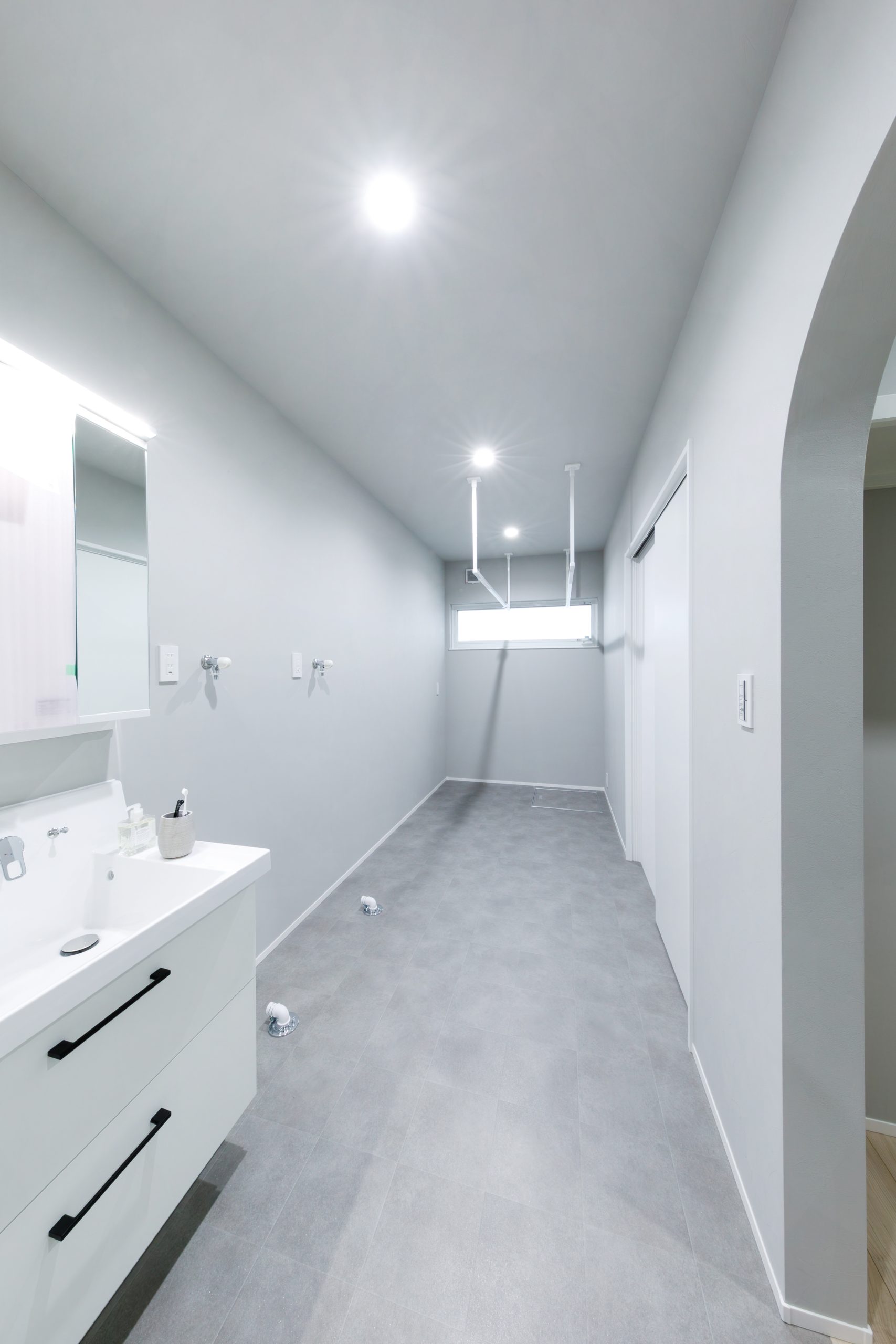 サンルームから直接繋がるファミリークローク。洗う→干す→畳む→