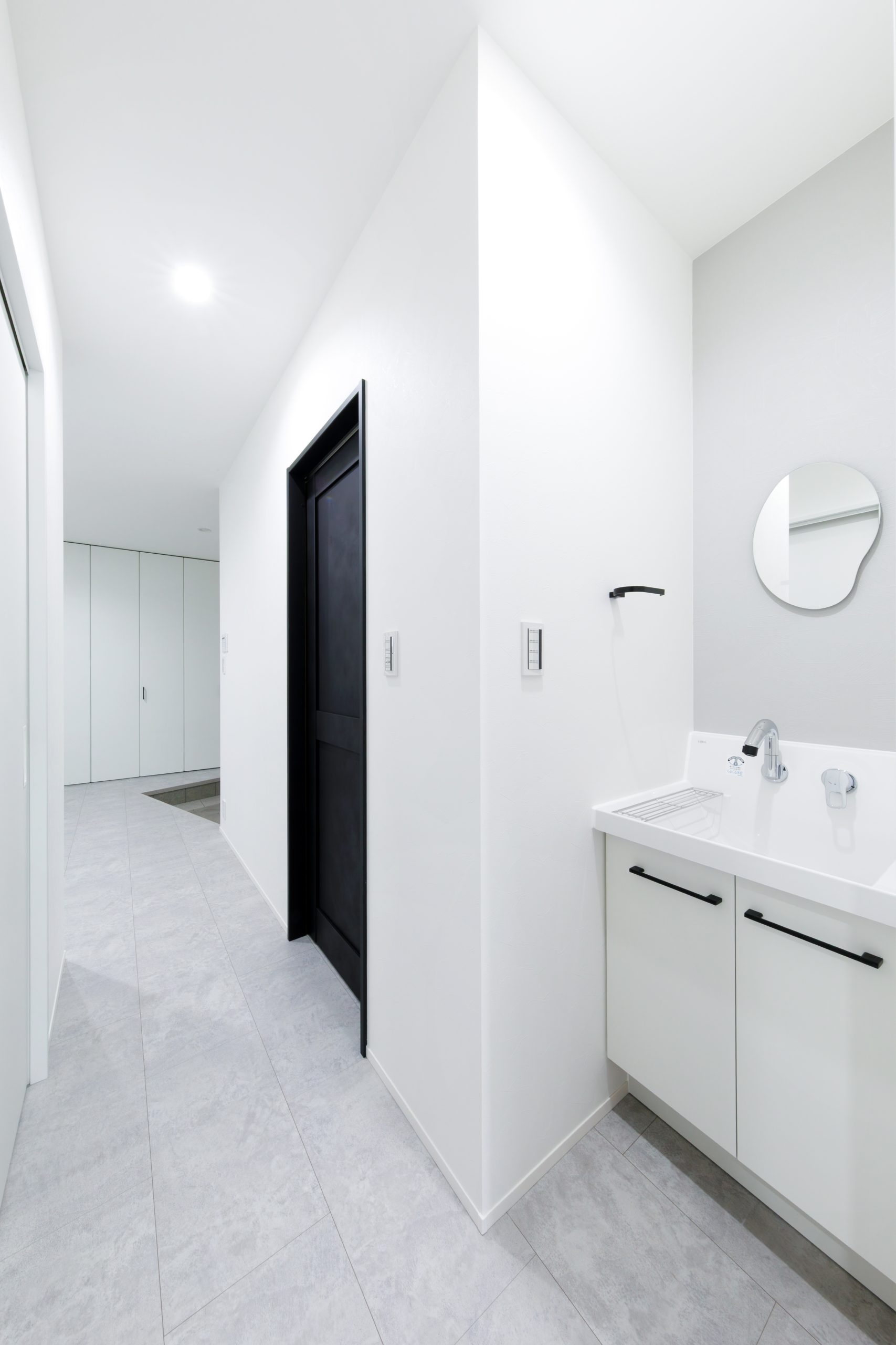 合わせて、洗面を2か所に設置し、洗濯機も2台設置できるようになっています。 -