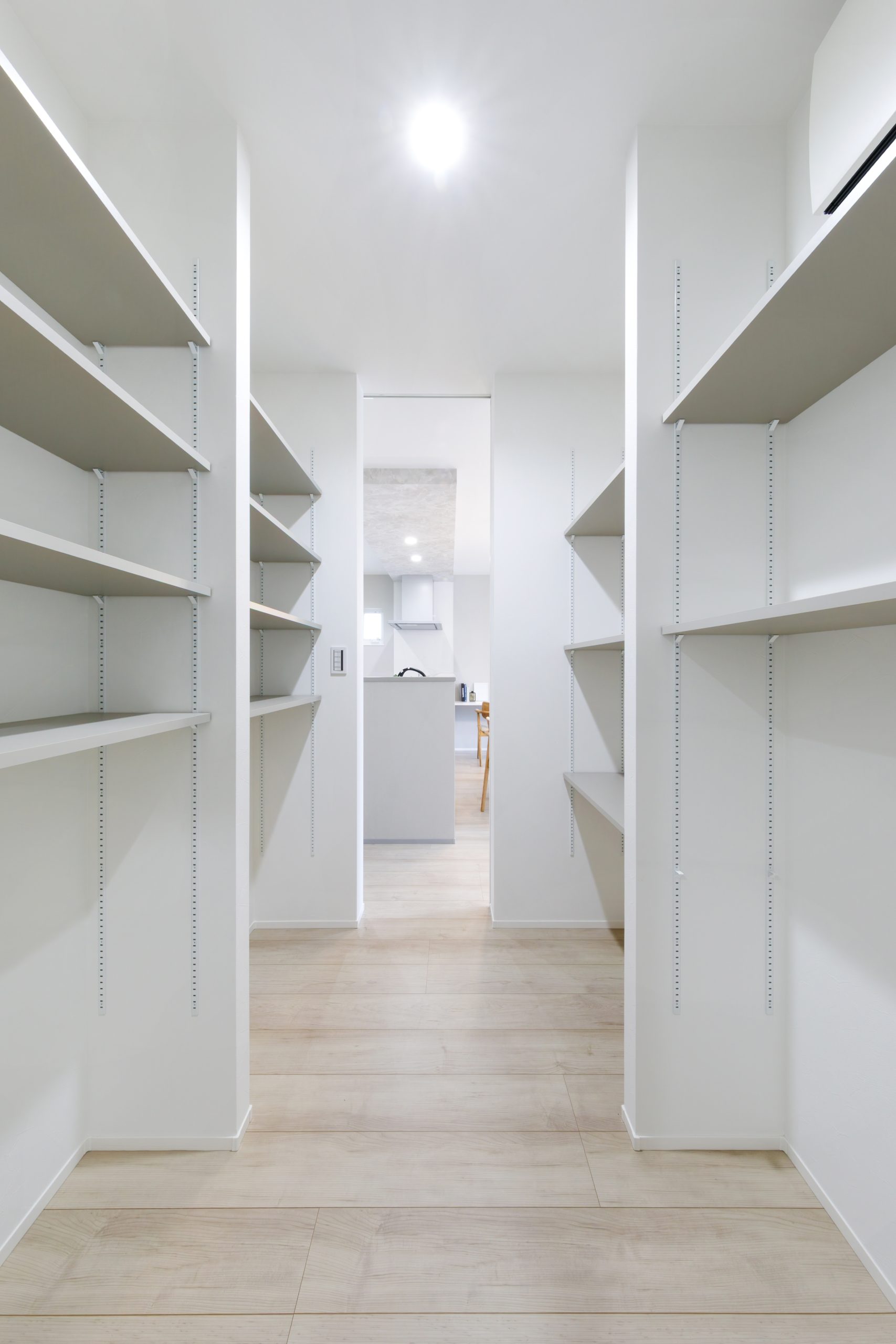 家具屋さんが手がけたオーダー収納を設け、シンプルながらもデザイン性をプラス。