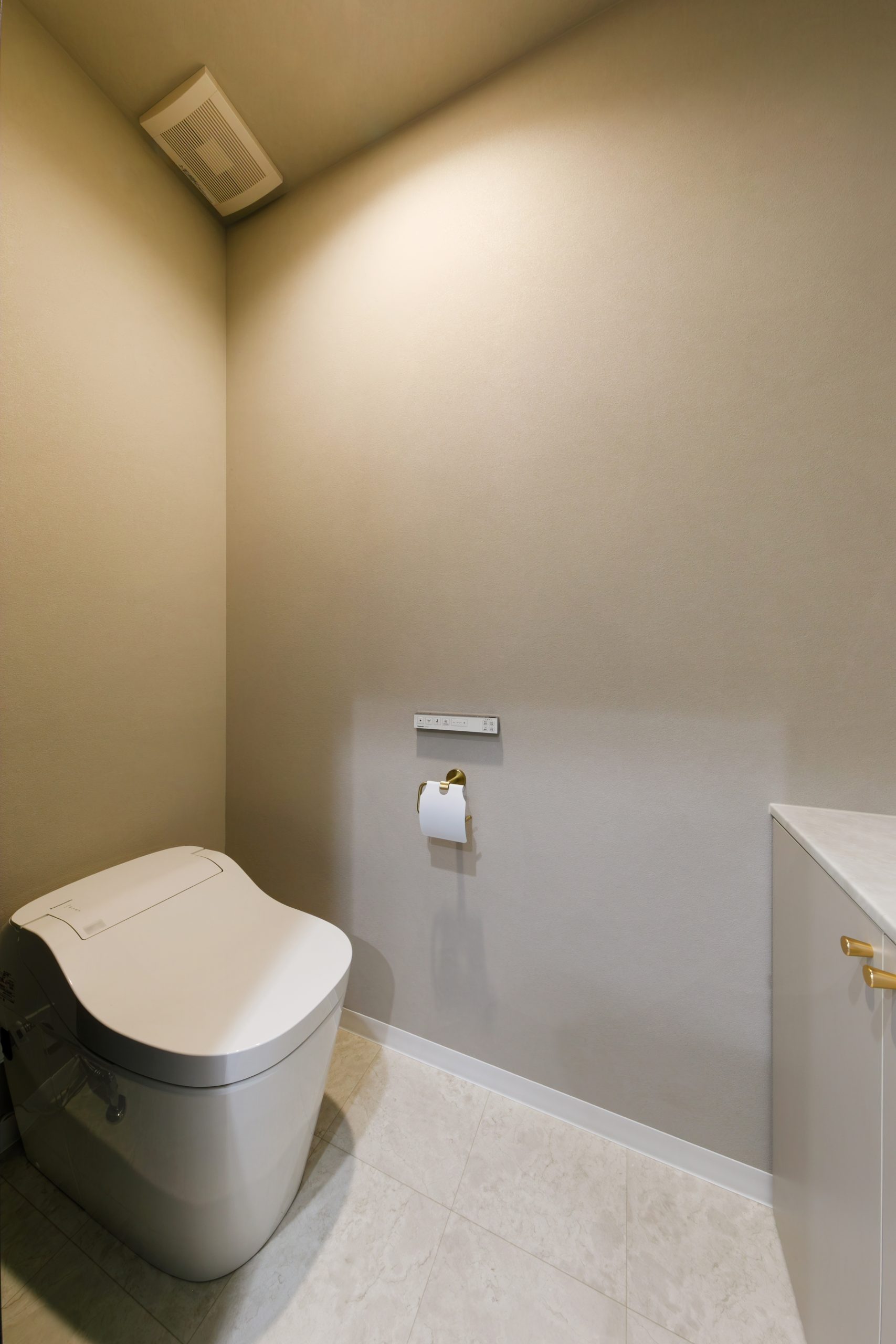 落ち着いたトーンでまとめた、上質感のあるレストルーム。